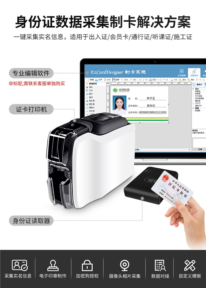 ZEBRA 斑馬PVC證卡打印機人像卡會員卡健康卡員工卡熱升華打印機 ZC300