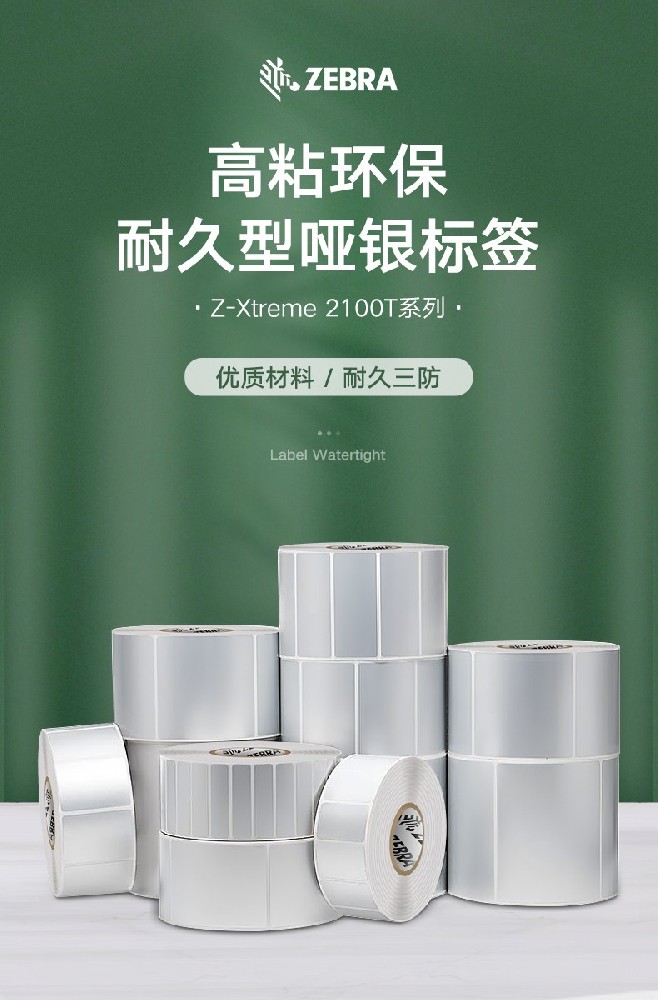 ZEBRA 斑馬2100T 斑馬通用耐久型啞銀聚酯標簽 60X 40mm 1000張/卷
