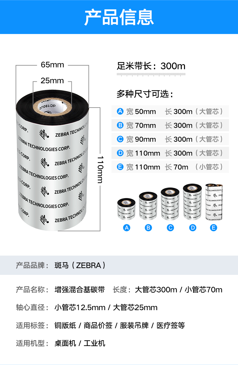 ZEBRA 斑馬混合基碳帶條碼標(biāo)簽打印機(jī)專用色帶 90*300M(工業(yè)機(jī)專用)